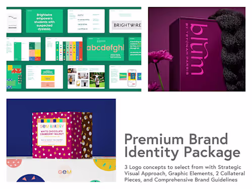 You'll receive a cohesive, customized color palette that represents your brand's personality and energy, along with font selections that embody and amplify your brand's tone and aesthetic. Carefully considered hierarchy will be established to ensure that your new brand kit provides a full range of intentional communication solutions.