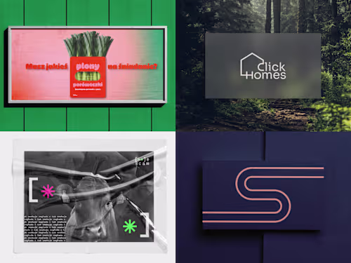 Realistic mockups presenting the logo in various applications to visualize its real-world impact.
