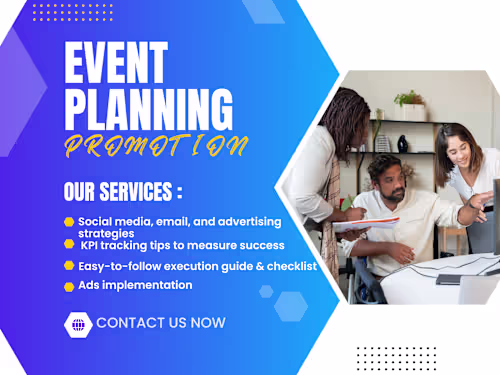 Custom Event Promotion Strategy Tailored marketing plan based on event type, target audience, and goals Timeline from pre-event to post-event activities Platform-specific strategy (social media, email, press, etc.) Target Audience Analysis Ideal attendee persona profiles Recommended messaging, tone, and content types to engage your audience Channel-Specific Promotion Plan Social media campaign blueprint (organic + paid options) Email marketing strategy (sequence, subject lines, content ideas) Influencer, partnership, or sponsor collaboration strategy Press release or media outreach plan (if applicable) Content Calendar Day-by-day or week-by-week publishing schedule Suggested captions, hashtags, and creative themes Ad Strategy (If Applicable) Ad copy examples Targeting suggestions (interests, demographics, locations) Budget and bidding recommendations Execution Guide / Checklist Step-by-step instructions on how to implement the promotion plan Task checklist with due dates and responsibilities Tools and platforms to use (e.g., scheduling tools, design tools, tracking software) KPIs & Tracking Recommendations Suggested key performance indicators (KPIs) Guidance on how to track ROI and engagement metrics Post-Event Promotion Tips Follow-up strategy (email recap, photo sharing, thank you posts) Audience engagement ideas to maintain momentum after the event Editable Documents Promotion plan in PDF or DOC format Editable calendar (Excel, Google Sheets, or Notion) Templates or frameworks (if included)