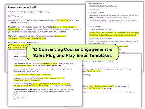 → Clear, persuasive copy to sell your course with confidence → Strategic flow: intro → value → objections → urgency → final push → Proven formulas adapted for your tone and ICA → Includes email-specific hooks, storytelling tips, and CTA guidance