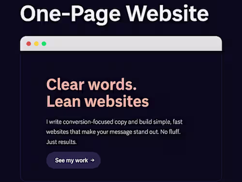 You’ll receive a fully built, live one-page Carrd website, including mobile optimization, form integration (Tally), and all page copy. The site will be published on a Carrd subdomain or exported to your own domain upon request.