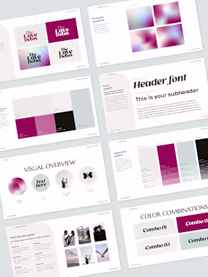 A comprehensive reference to ensure visual and verbal consistency across platforms. Format: PDF slide deck Includes: Logo usage Color + font rules Voice/tone keywords Photo direction Sample layouts + applications Revisions: 1 round of light edits