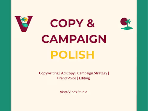 In-depth tone and clarity audit with before-and-after examples for 2–3 assets. Includes recommendations for emotional framing, audience targeting, and call-to-action structure. One follow-up revision included to finalize alignment.