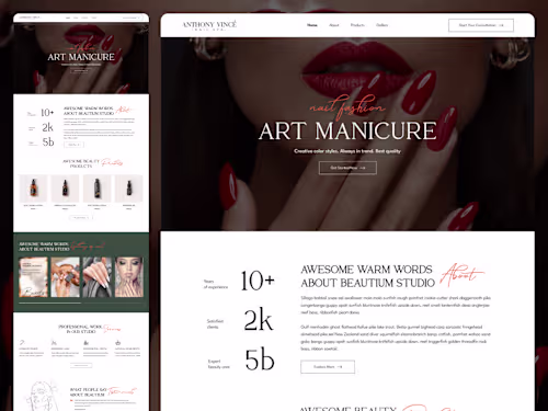 This Art Manicure website design is one of my recent works where I combined my 2+ years of UX/UI experience with a deep understanding of beauty studio branding. My goal was to craft a pixel-perfect, responsive, and visually elegant website that not only attracts visitors but also converts them into loyal clients. ✅ What I Delivered ✔️ Pixel-perfect, Responsive Website UI/UX Design I designed a clean and luxurious layout that looks stunning on desktop, tablet, and mobile — ensuring a flawless user experience across all devices. ✔️ Custom Website Template Every section, from product highlights to blogs and testimonials, was thoughtfully crafted to match the unique vibe of a modern beauty & nail studio. ✔️ Bootstrap Grid System Layout I followed an organized, scalable grid system to keep the layout structured, clean, and developer-friendly. ✔️ Modern Icons, Fonts & Color Palette I selected trendy yet timeless fonts, icons, and color tones that reflect the premium feel of the brand. ✔️ Conversion-focused Sections Strategically placed CTAs, service highlights, product sections, and a blog keep visitors engaged and encourage bookings. ✔️ Editable & Dev-ready Assets The final handover includes organized Figma source files and PDF exports — making the design easy to develop. ✅ My Process Every page was designed keeping readability, usability, and aesthetics in mind. I believe in crafting interfaces that not only look beautiful but are also easy to use and help businesses grow. This project showcases how I merge creativity with functional UX to deliver real results.