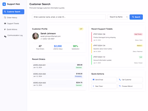 Customer Support Dashboard with Full Order & Ticket Visibility