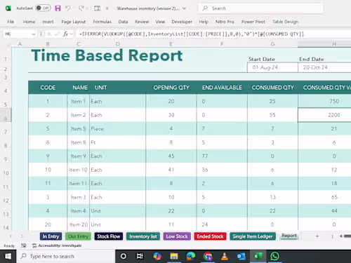 If want to see your inventory detail in 1 Click then this template if for you. You can easily update stock in and stock out. See reports like safety inventory stock level SKU wise Zero balance SKU report SKU wise report Date wise report Use excel vba and formula to automate it so that you will get your result by just put the number in the cells
