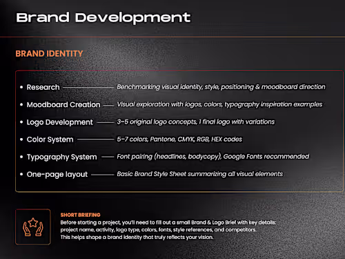 5–7 colors, Pantone, CMYK, RGB, HEX codes