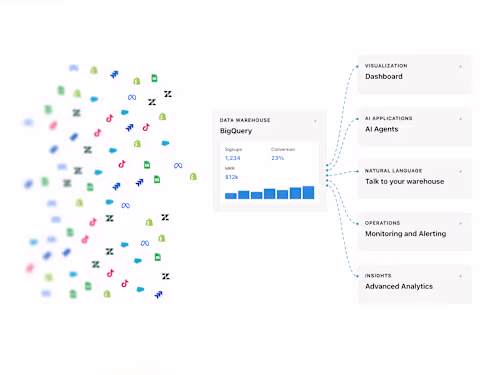 Anything: Spreadsheets, Paid Media platforms or SaaS tools like HubSpot, Notion, or Shopify. The base implementation includes one data source from raw to modeled, and you can easily add more later at the hourly rate.