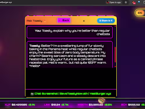 Full-stack applications with AI integration. Whether it's chatbots, content generation, or custom AI features, I'll build it fast and make it work smoothly. Example: YeetBurger's AI character chat system Turnaround: 5-7 days Tech: React, Node.js, AI APIs