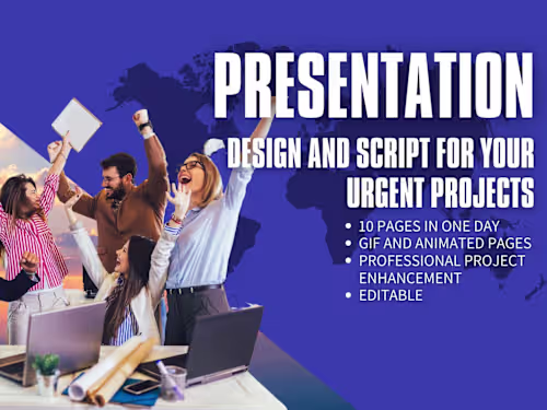 1. Customized Presentation Slides: - Fully designed and branded presentation slides tailored to your specific needs and audience. 2. High-Quality Visuals: - Incorporation of high-quality graphics, icons, and images to enhance visual appeal and engagement. 3. Consistent Design Theme: - A cohesive design theme that aligns with your brand identity and message. 4. Interactive Elements: - Integration of interactive elements such as clickable links, embedded videos, and animations to make the presentation more dynamic. 5. Clear and Structured Content: - Well-organized slides with clear headings, subheadings, and bullet points to ensure easy readability and logical flow. 6. Professional Typography: - Use of professional fonts and typography to enhance readability and aesthetic appeal. 7. Data Visualization: - Custom charts, graphs, and infographics to effectively communicate complex data and statistics. 8. Editable Format: - Delivery of the presentation in an editable format (e.g., PowerPoint, Google Slides) to allow for future updates and modifications. 9. Final Review and Revisions: - A final review of the presentation to ensure all elements meet your expectations, with a set number of revisions included. 10. Supporting Materials: - Supplementary materials such as speaker notes, handouts, or additional reference documents if requested. 11. Delivery and Support: - Timely delivery of the final presentation files along with any necessary technical support or guidance on how to use and present the slides effectively.
