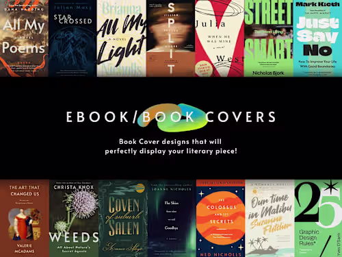 A fully-designed cover for an ebook or a fully-designed front cover, back cover, and spine for printed book projects.