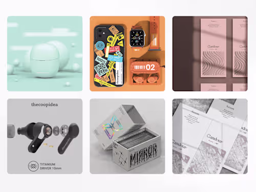 A visual collage representing the overall direction, including render angles, animation story board and any stylistic references to align expectation.