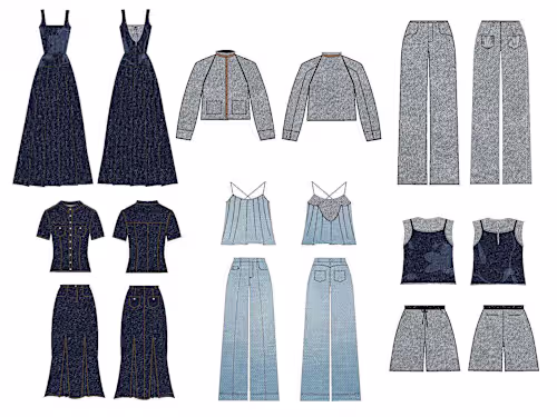 Clean front and back flats of garments with all details (Seams, Buttons, etc.)