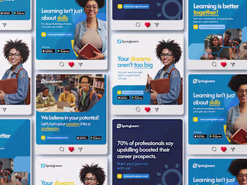 Branded visuals tailored for platforms like Instagram, Facebook, Twitter, and LinkedIn.