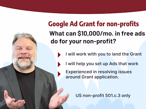 Unlock Up to $10,000/Month in Free Google Ads for Your Nonprofit! Many nonprofits miss out on the Google Ad Grant because they’re unaware of it or struggle with eligibility requirements. I specialize in helping organizations secure this incredible opportunity to boost their visibility and impact. My Services: 1. Eligibility Check -Pre-audit to confirm grant eligibility -Website review to ensure Google compliance 2. Grant Application Service -Full application handling, including up to 5 reapplications or appeals if needed 3. Full Grant Setup -Eligibility check + grant application -Creation of 1 tailored Google Ads campaign, including keyword research, ad copywriting, and a custom webpage landing page Why Choose Me? -Expertise in tricky applications (including faith-based organizations) -Proven experience: 1,000+ websites built – I know what works! -Personalized, reliable support every step of the way Don’t miss this opportunity. Let’s get your nonprofit noticed and make the most of Google Ad Grants!