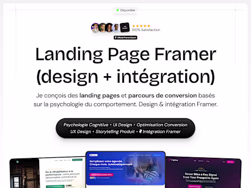 J’intègre la landing page directement sur Framer pour un rendu fluide, responsive et fidèle à la maquette. Chaque interaction, transition et composant est optimisé pour offrir une expérience rapide, claire et cohérente avec le design initial. Vous recevez une page prête à publier, performante et simple à gérer.