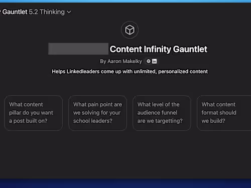 An AI assistant trained on your content matrix and funnel optimization topics which will assist you in creating infinite pieces of on-brand content. For example: you have 7 days of content to plan on your calendar (Content Matrix) and your Can be in the form of a Custom GPT, Claude Project, or Gemini Gem.