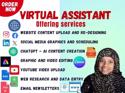 Unlock unparalleled productivity with our tailored virtual assistant services! From managing your schedule and handling data entry to organizing your workflow and providing detailed reports, we streamline your tasks so you can focus on what truly matters. Experience seamless support, exceptional organization, and proactive solutions designed to elevate your efficiency and drive your success.