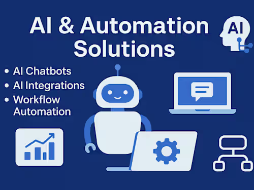 1. Custom AI Chatbot A fully functional AI-powered chatbot for customer support, FAQs, or lead generation, trained on your business data. 2. AI Integrations Integration of OpenAI/GPT or other AI models into your website, app, or CRM for smarter workflows. 3. Workflow Automation Automated workflows using Zapier, Integromat, or RPA tools to reduce manual tasks. 4. API & Third-Party Connections Secure API development and integration with third-party platforms (CRM, e-commerce, marketing tools). 5. Documentation & Training Step-by-step documentation and basic training on how to manage and update the AI/automation system. 6. Testing & Support End-to-end testing of the system and free support for a limited period