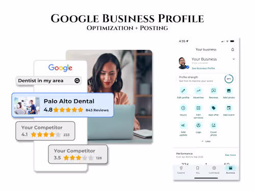 You'll get an optimized Google Business Profile that is geared to do two things: Call your business or click through to your website. If you give us access we will make the updates for you. Please note that you are required to have an existing Google Business Profile in good standing order.