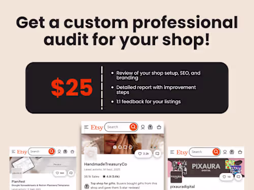 A detailed review of your shop setup, SEO, and branding to ensure everything is optimized for visibility and professionalism—giving your business a polished look and a better chance to convert visitors into buyers.