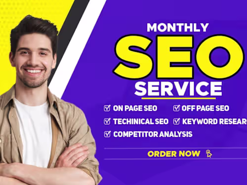 I’ll provide complete monthly SEO services designed to help your website rank higher on Google and attract consistent organic traffic. What’s included: In-depth SEO audit and keyword research On-page optimization (titles, meta, headings, internal links) High-quality backlink building Technical SEO fixes (speed, indexing, errors) Monthly progress report with ranking updates Goal: Improve your site’s visibility, authority, and keyword rankings with proven white-hat SEO strategies.