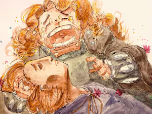 A scanned, digital image of the painting (.tiff or .png file) at 300dpi and the dimensions of your choice. Lettering included --- essentially a complete book cover.