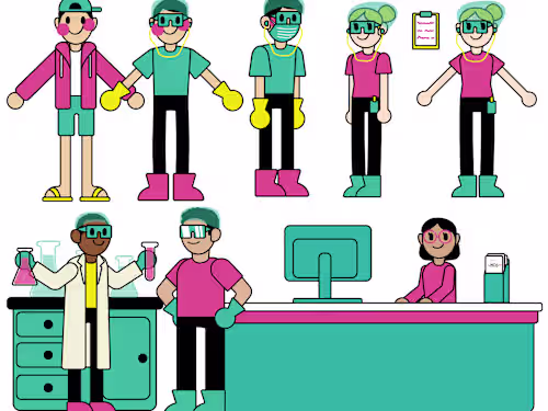 Characters with a simple cute style, organized layers in Adobe Illustrator files and made ready for animating!