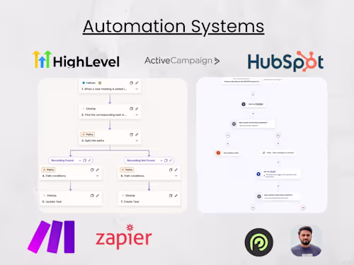 What you get: A fully systemized CRM that manages leads, conversations, and pipeline movement automatically across the entire customer lifecycle. Includes: Lead capture, routing, and lifecycle stages Sales pipeline and follow-up automation Missed-call, callback, and status logic