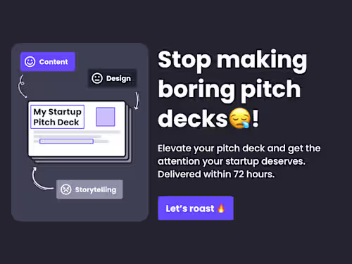 I'm here to fix your pitch deck from content and design to storytelling. But it's not just about the deck – how you'll use it for investor pitches, important meetings, and public presentations. Our relationship doesn't end after the service; don't hesitate to reach out via email if you need help or advice.