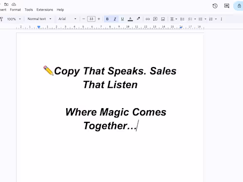 1)Email Campaigns: I specialize in crafting high-converting email sequences that nurture leads and drive sales. 2)Product Descriptions Copy: Benefit-focused descriptions that increase conversions. 3)Landing Page Copy: Action-oriented copy that turns visitors into customers. 4)Ad Copy: Punchy ad copy designed to grab attention and drive traffic. 5)A/B Testing: Optimizing email campaigns and copy through data-driven testing.