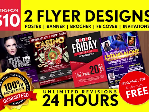 design flyer, postcard, door hanger, or media kit in 24 hours