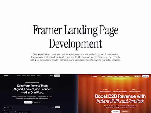 Full landing page development in Framer, based on your design or direction fully responsive and built for performance.