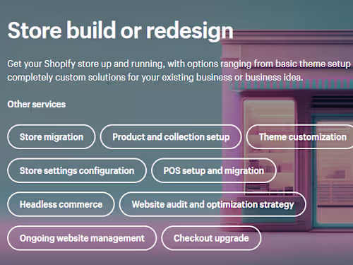 Get your Shopify store up and running, with options ranging from basic theme setup to completely custom solutions for your existing business or business idea.
