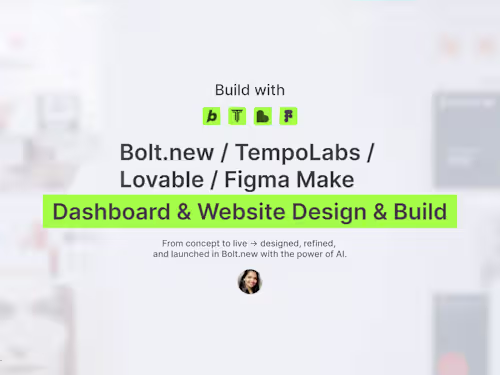 Crafted tailored websites or dashboards using Bolt.new / TempoLabs / Lovable / FigmaMake AI-powered tools, blending creativity and performance for your brand.