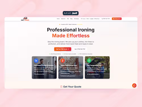 The design is custom. The website is built in Bolt but the layout, spacing, structure, and visuals are tailored to your business.