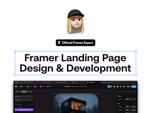 A modern, fully custom landing page designed directly in Framer. Responsive across desktop, tablet, and mobile, built with performance and SEO best practices in mind. Includes up to 2 rounds of revisions.
