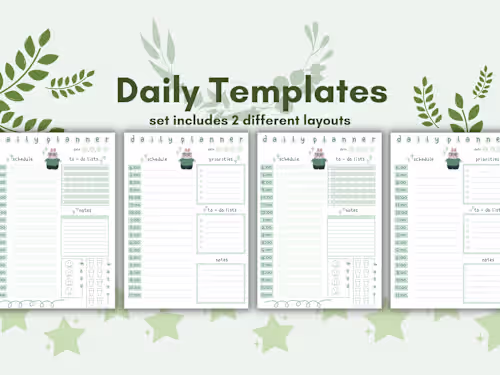 We offer a wide range of planner templates, including daily, weekly, and monthly layouts, goal-setting pages, habit trackers, meal planners, budget trackers, and more.