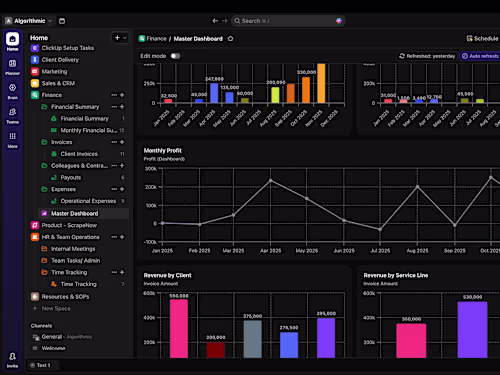 I will analyze your workflows and build a clear ClickUp structure, including spaces, folders, lists, views, statuses, and custom fields designed to match how your team actually works.