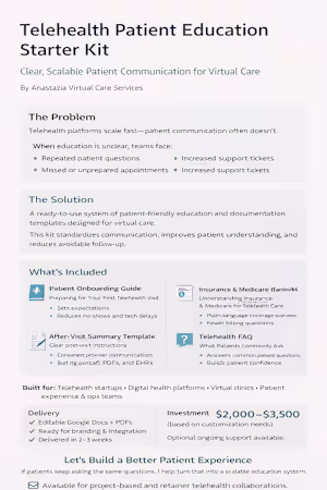 Telehealth patient onboarding guides “Preparing for Your Telehealth Visit” handouts Plain-language patient education documents
