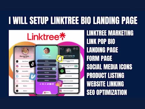 I will set up linktree bio link landing page for social media I will set up linktree, beacons, taplink, store store, link in bio landing page What is Linktree used for? Linktree is a site-sharing platform that you can use to display & share all the important links with your audience at once anywhere with just one URL. It can be used as a bio link on social media platforms like Instagram, TikTok, Twitch, Facebook, YouTube, Twitter, and LinkedIn, or you can use it for your work, brand, or business. WHAT I WILL DO: Sign up for a LINKTREE Account (if you haven't signed up already) Create a Username Upload Profile Picture or Logo Upload Bio Section Content About You or Your Business Services (Limited to 80 Characters Only) Set BG image for Upgrade Version ACCOUNT CREATION: I'll design and set up a visually appealing LINKTREE, BEACONS, STAN STORE, TAPLINK, and LNK BIO page that reflects your Brand or Personality. CUSTOM LINKS: Add all your important links to your Website, Blog, Social Media Profiles, Online Store, and more in one place. CALL-TO-ACTION BUTTONS: Optimize user engagement with strategically placed Call-To-Action Buttons that drive traffic where you want. ORDER NOW