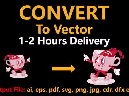 Hi There! Are you looking to vectorize your image, logo, graphics to vector file? Do you want to change color, modify, customize your existing logo? Do you need high resolution vector files for printing, laser engraving, vinyl cut, website, laser cut? you are at the right place! We are vector tracing experts having experience of over 5 years. We have extensive knowledge in image tracing, redraw, logo edit, vector logo, convert logo and image to vector. We don't do any real photos or 3D vectorization. Our Services: 100% Satisfaction Guarantee 24/7 Support 1-2 Hours Delivery (simple icon/logo/image/object etc.) Print Ready 300 DPI file High Resolution 100% MANUAL Tracing Recreate Your Lost Pixels Clean and clear format Unlimited Revisions Fully Editable Vectorize pixelated, blurry, raster, low resolution logo or image All Vector Files AI, EPD, CDR, PDF, DWG, TIFF, SVG, Etc. *Only VECTOR formats are scalable to any size without losing quality. Each artwork varies in detail and complexity. Therefore, intricate designs may require extra time and cost. For delivery within 2 hours, please contact me before placing your order.