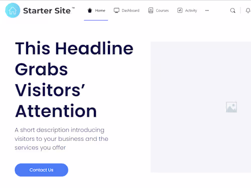 Includes the following pages: - Home page - Member Dashboard - Courses (grid of your courses) - Blog - About - Contact - FAQs