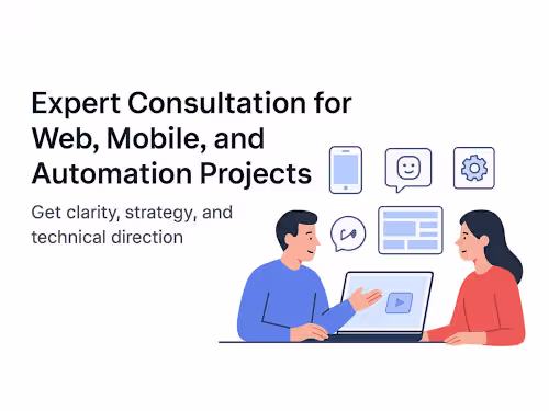 I provide expert guidance to help clients plan, troubleshoot, and optimize their tech projects, whether it’s a web app, mobile app, chatbot, or automation workflow. Here’s the kind of guidance I can provide: • Help you choose the right tech stack, framework, or tools for your project. • Review your existing codebase or app and recommend improvements. • Advise on frontend performance, UI/UX flow, or responsive design. • Walk you through setting up automation workflows (e.g., with n8n, APIs, or integrations). • Offer technical direction for chatbot systems, from idea to deployment. • Discuss architecture, scalability, hosting, or CI/CD setup for your web or mobile projects. You can ask me questions like: • “What’s the best way to structure my web or mobile app?” • “How can I improve my frontend performance or code quality?” • “Which tools should I use to automate my business workflows?” • “How can I integrate my chatbot or API with my system?” • “What’s the best approach for deploying and maintaining my app efficiently?” Whether you’re starting a new project or refining an existing one, I’ll help you make clear, informed technical decisions and move forward confidently.