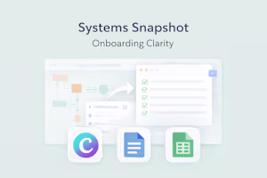 This snapshot is ideal if you have one workflow that feels messy, manual, or confusing. Common examples include onboarding, client communication, content planning, inventory, scheduling, or tracking leads. If you aren’t sure what to choose, I’ll help you decide during intake.