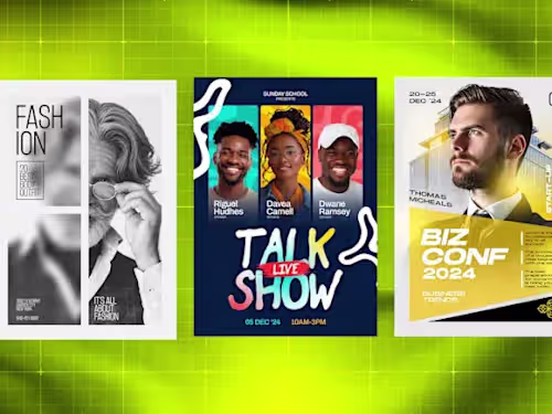 Your poster will be designed from scratch to match your brand or vision, using modern design principles, minimalist aesthetics, and a focus on impact and readability.