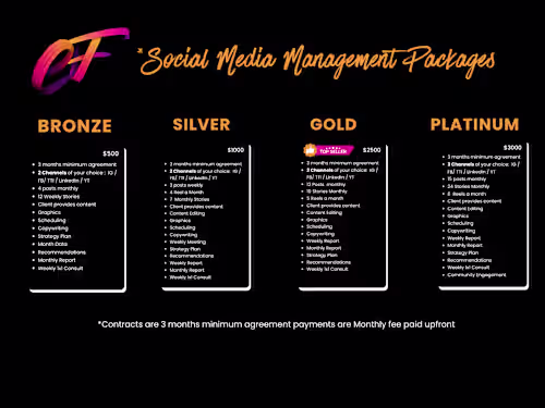 1. Content Creation: Developing engaging posts, graphics, videos, and stories tailored to each platform. 2. Content Calendar: Planning and scheduling content in advance to maintain consistency and relevance. 3. Audience Engagement: Responding to comments, messages, and mentions to foster community interaction. 4. Growth Strategies: Implementing tactics to increase followers, likes, shares, and other engagement metrics. 5. Analytics Reporting: Monitoring key performance indicators (KPIs) and providing insights for optimization. 6. Platform Optimization: Optimizing profiles, hashtags, and bios to maximize visibility and reach. 7. Ad Campaigns: Designing and managing paid advertising campaigns to target specific audiences. 8. Influencer Collaborations: Partnering with influencers to expand reach and credibility within the target market. 9. Reputation Management: Monitoring brand mentions and addressing any negative feedback or reviews. 10. Strategy Refinement: Regularly assessing performance data to refine strategies and improve results over time.