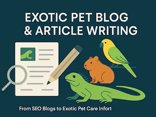 + Expert-level writing on your chosen exotic species/topic. Insightful, SEO-optimized content for reptiles, birds, small mammals, amphibians & more
