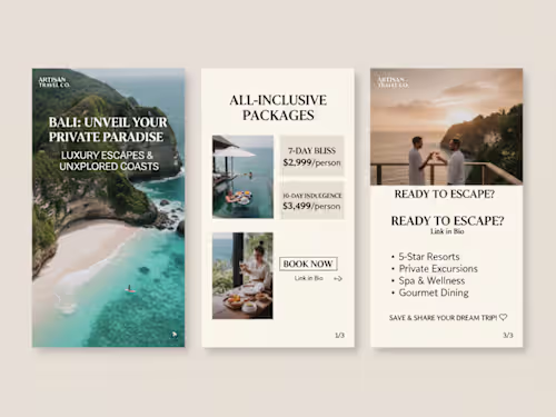 I translate your destination details, hotel features, or travel itineraries into a logical, slide-by-slide storyboard designed to keep users swiping until the end.