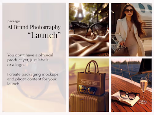 1. Packaging Mockup Creation — I design a realistic product container (bottle, jar, or tube) from scratch. 2. Label Integration — your logo or label design is applied accurately across all visuals. 3. Mini Brand Moodboard — a curated 1–2 page moodboard (colors, light, textures, props) to define the atmosphere of your launch visuals. 4. Packaging Variants (optional) — explore 1–2 packaging types (e.g. tube vs. jar) before confirming direction.